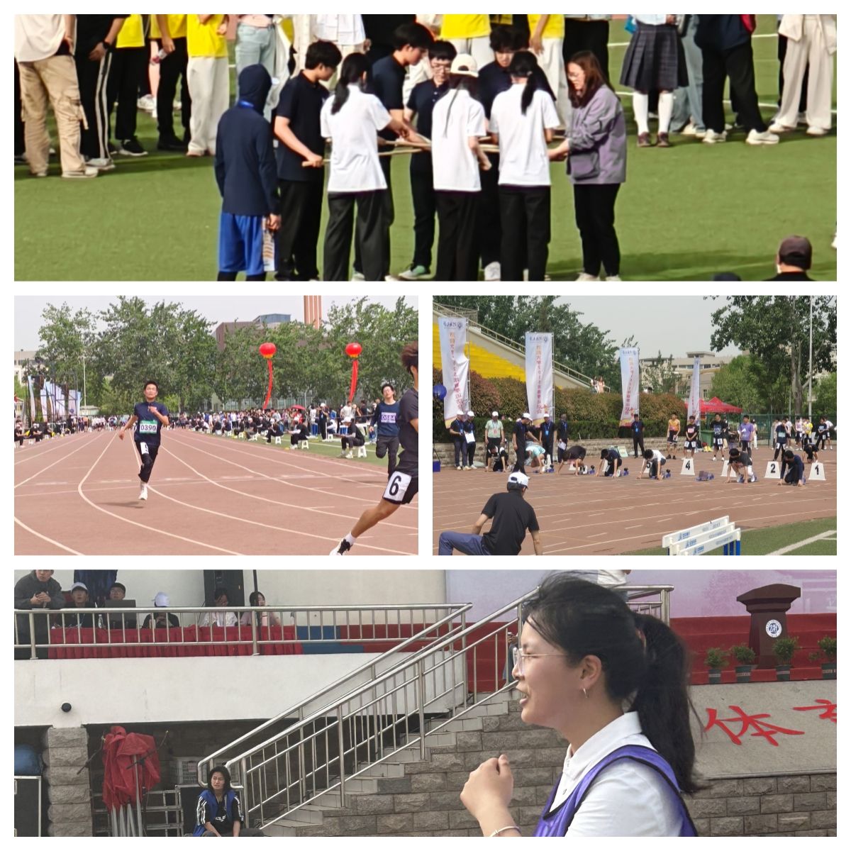 推实心球赛场,霍瑞奇和吴资贤同学扎稳马步、蓄力爆发,铅球划破长空的弧线,是力量与技巧的完美碰撞;百米赛道上,马宇航等短跑健将如离弦之箭,风驰电掣间点燃全场激情;长跑赛道上,程丹等耐力选手们步伐稳健,在一圈又一圈的坚持中挑战自我极限,汗水浸透衣衫却从未放慢脚步。团体项目中,“众星捧月”里队员们默契配合,颠球起落间凝聚团队智慧;“四人五足”赛场上,绑带相连的师生们喊着整齐口号,步伐协调向前,将团结精神展现得淋漓尽致。
