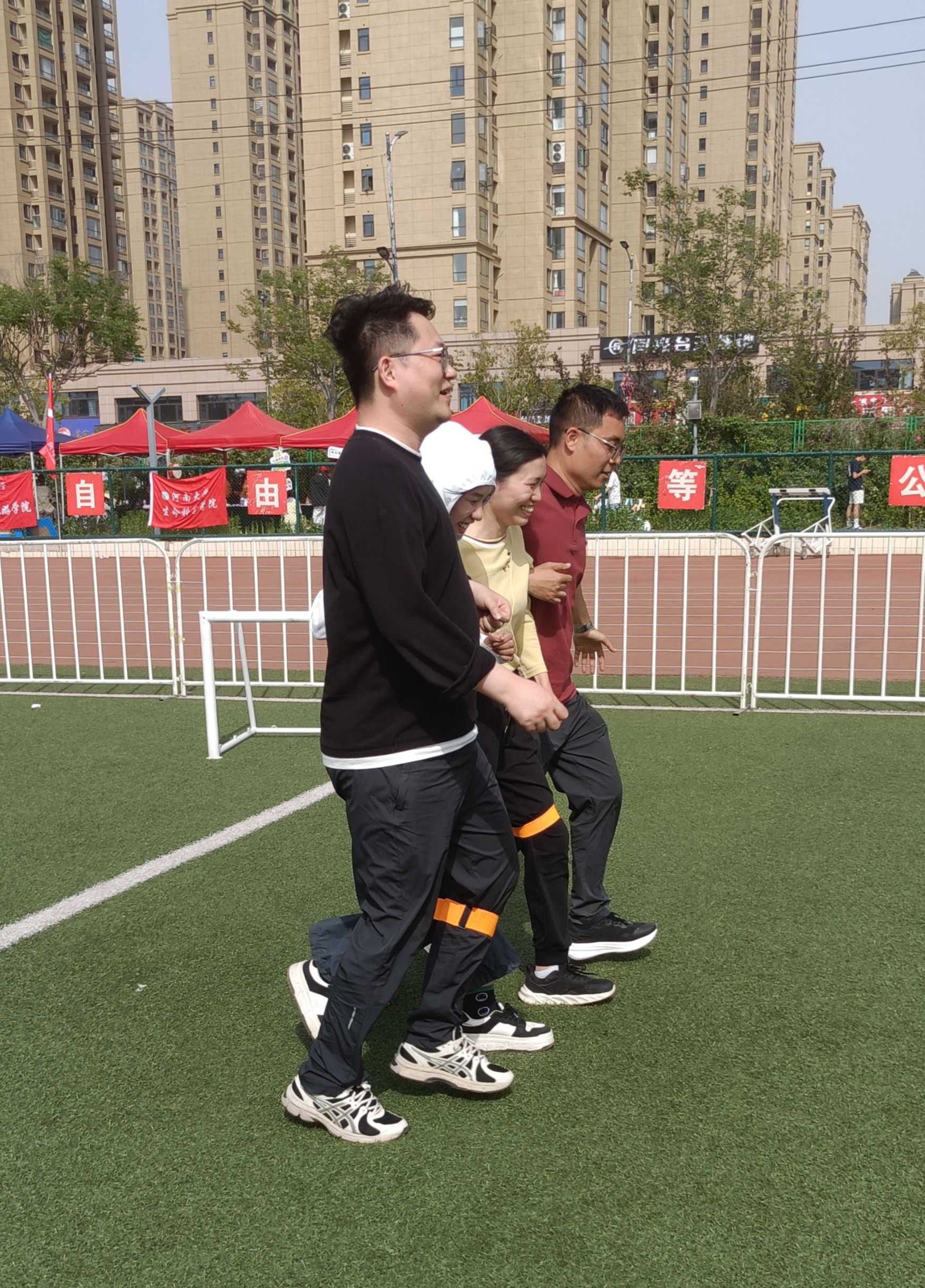 备受瞩目的教工四人五足比赛中,我院教师组刘绪强、刘振花、崔丽丽、田海龙四位老师肩并肩、脚连脚,以“左右左”的口号凝聚协作力量,在摇摇晃晃中稳步向前,最终斩获第八名。他们笑着冲过终点的身影,是“团结一心、乐享运动”的最佳注解。