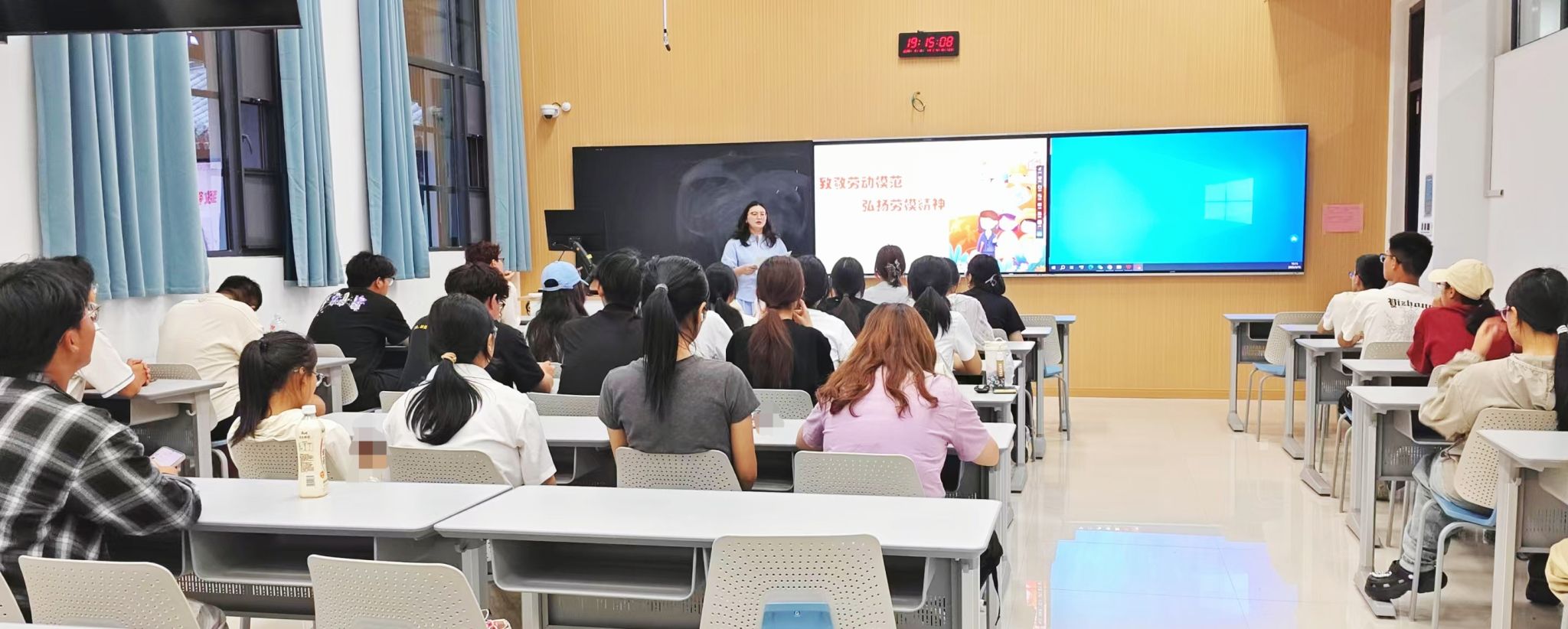 5月5日,学院教务办负责人刘馨带领24级本科生集体学习了习近平总书记关于劳动教育的重要论述和在中华全国总工会成立100周年暨全国劳动模范和先进工作者表彰大会上的重要讲话。随后,刘老师带领大家观看了郭亮人造公路和人造天河红旗渠的故事和纪录片,学习“自力更生、艰苦创业、自强不息、开拓创新、团结协作、无私奉献”的劳动精神内涵,并从中汲取奋进力量。最后,通过“阶级挑战”互动游戏,同学们体会到了劳动职业公平,树立了正确的劳动价值观。