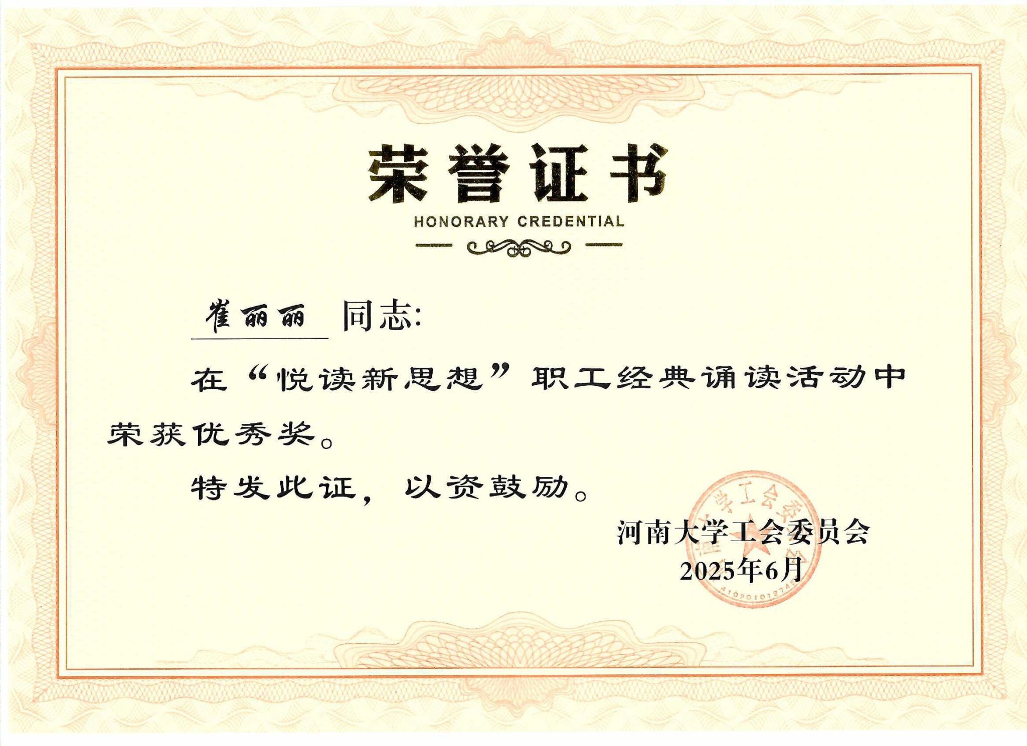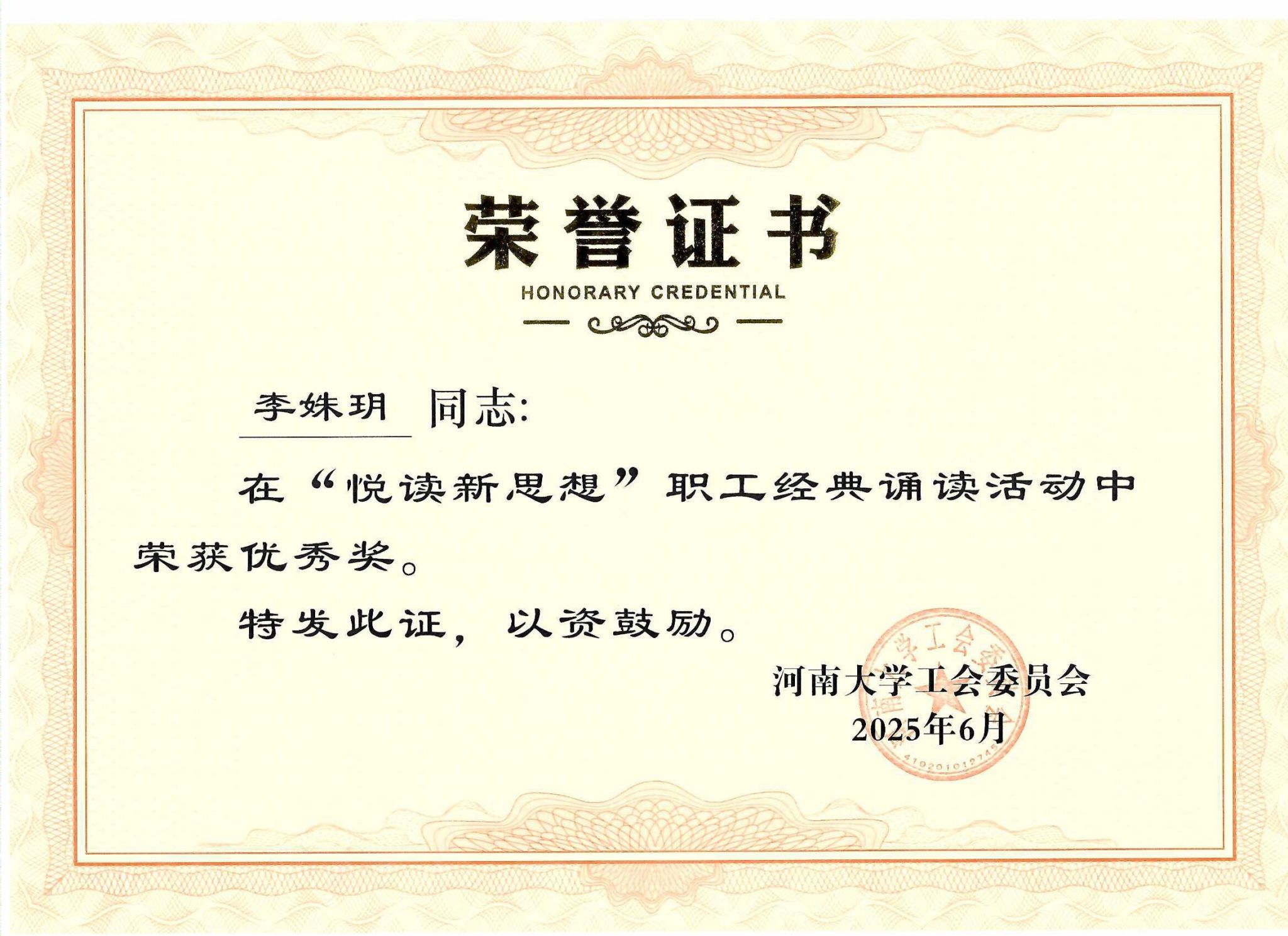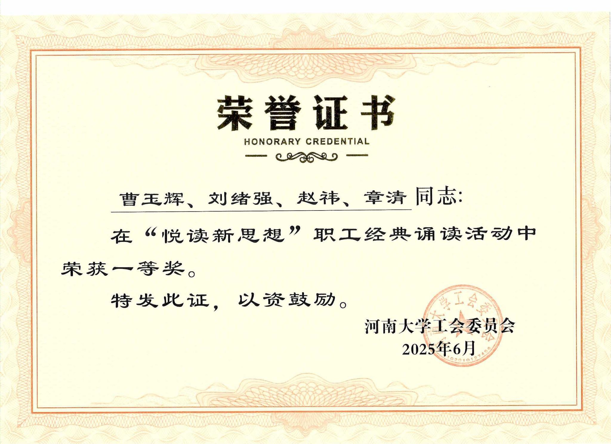 据悉,为深入学习贯彻习近平新时代中国特色社会主义思想,认真落实党中央、省委关于推进全民阅读、建设书香河南的重要决策部署,河南省委宣传部、省总工会联合开展了“悦读新思想”河南省职工经典诵读活动。自学校工会下发相关通知后,学院分工会积极组织,广泛动员,教职工作品连续两年荣获校级一等奖。(作者:关利平 审核:王磊)