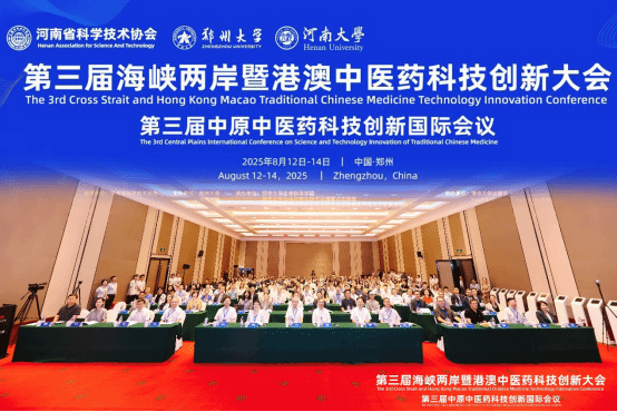 2025年8月13日,由河南省科学技术协会指导,郑州大学、河南大学主办的“第三届海峡两岸暨港澳中医药科技创新大会”在郑州举行。本次会议汇聚了来自中国、新西兰、日本、马来西亚、美国、荷兰、塞尔维亚、韩国、黑山、澳大利亚、俄罗斯、英国、泰国等13个国家的200多名专家,参会总人数达300多人。