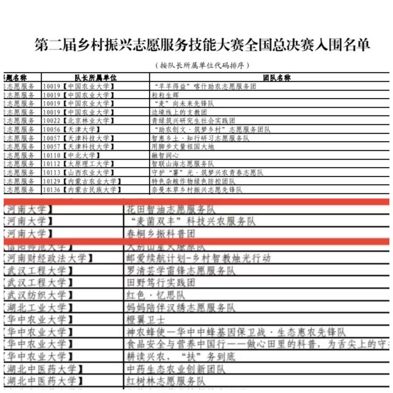 8月29日,全国农科院研究生志愿服务联盟秘书处(〔2025〕12号)文件公布了中国研究生乡村振兴科技强农 创新大赛第二届乡村振兴志愿服务技能大赛函评结果。我校推荐的三支队伍入围全国总决赛。分别是农学院执行院长王道杰教授指导的“多功能油菜助力乡村振兴”、生命科学学院赵海鹏教授指导的“万物共生,科普护生灵”、生命科学学院苏亚蕊教授指导的“‘双技到田’科普兴农行动”项目。