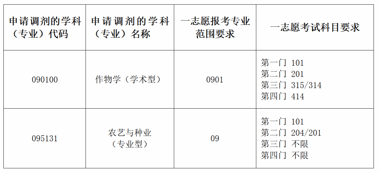 作物学(090100)优先从第一志愿报考作物学(0901)专业的考生中,依次按初试成绩从高到低进行调剂。