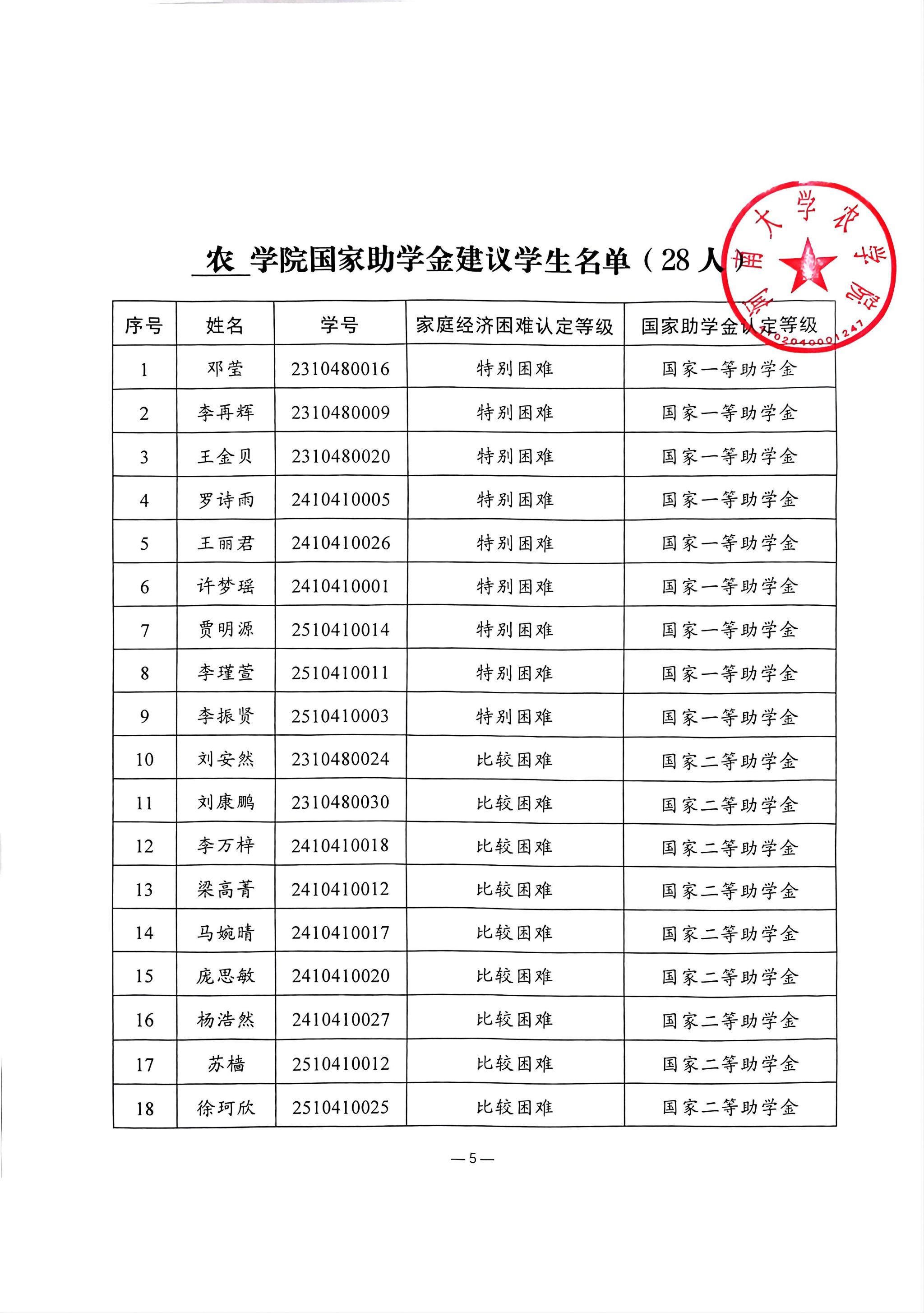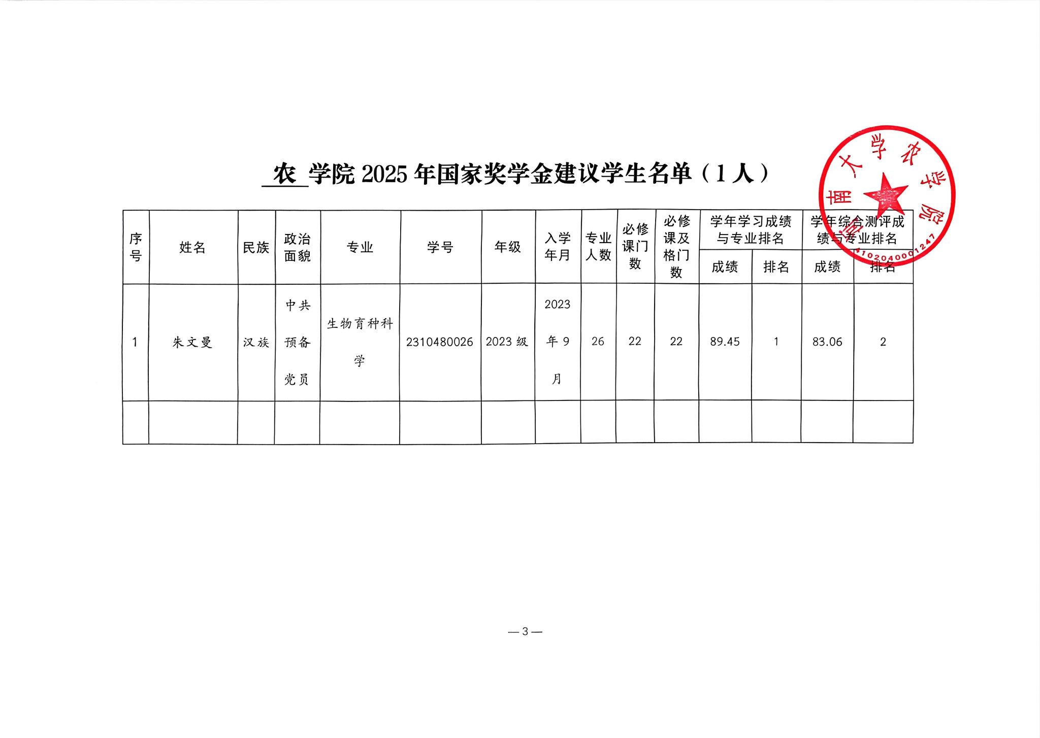 农学院 2025 年国家奖助学金建议学生名单公示-开元游戏大厅app官网入口